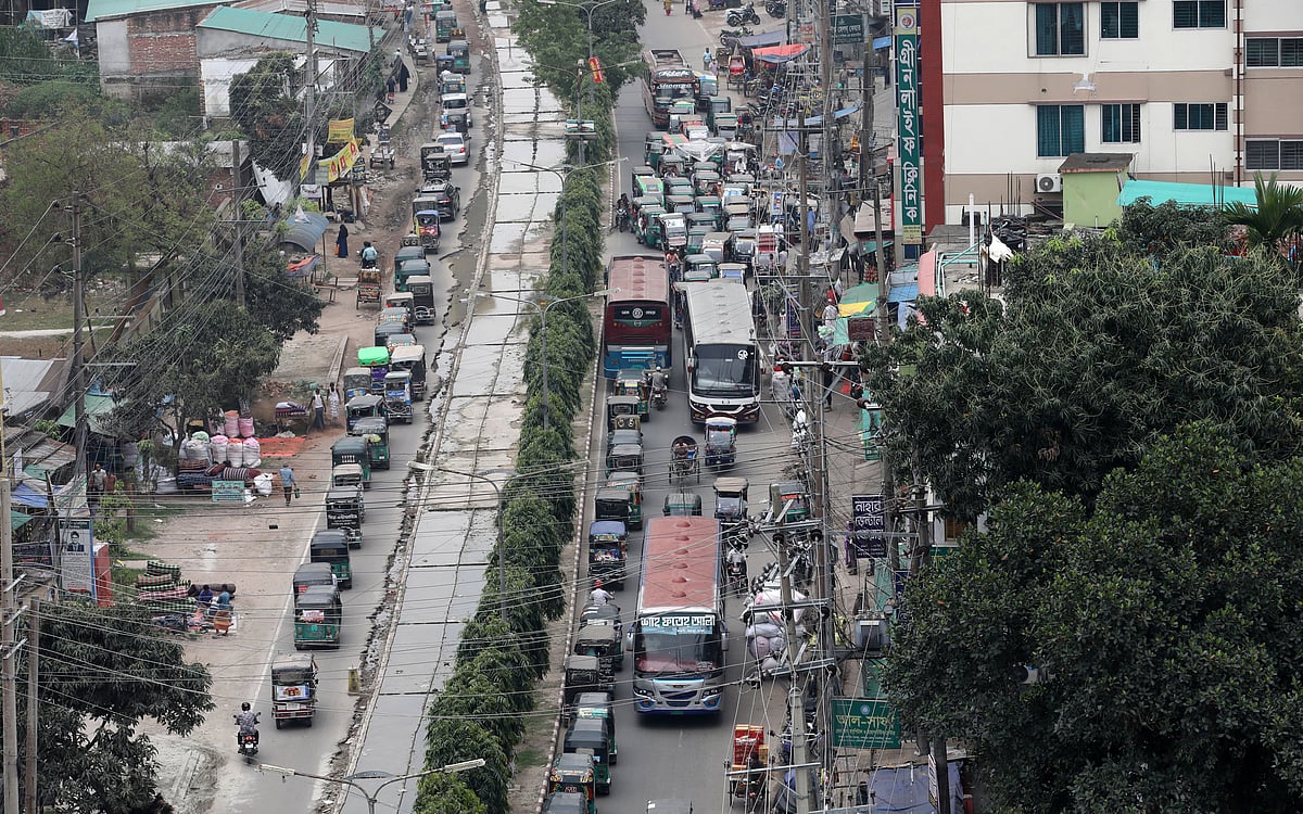 গতকাল সরেজমিনে দেখা যায়, ঠনঠনিয়া ভাই পাগলার মাজার ও ওয়াইএমসিএ স্কুল মোড় থেকে লতিফপুর কলোনি বাজার পর্যন্ত শহরের প্রধান সড়কের বিভাজকের এক পাশে কার্পেটিং তুলে মাটি খুঁড়ে রড-সিমেন্টের ঢালাই দেওয়া হয়েছে। সড়কের ঢালাই দেওয়া অংশে যানবাহন চলাচল বন্ধ করে দেওয়া হয়েছে। এতে দিনরাতের অধিকাংশ সময় প্রচণ্ড যানজটে চরম ভোগান্তি পোহাতে হচ্ছে।